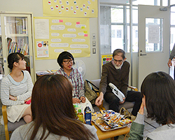 | 4月23日、ESL説明会を開催しました。毎年、年度のはじめに実施するもので、ESLの活動内容や、英語支援の具体例などを説明し、より多くの学生の利用を促すためのものです。 説明会は、スナックや飲物を囲んでパーティー形式で実施しました。ESL内に昨年度の英語合宿やスピーチコンテストの写真などを展示し、ネイティブを含む担当スタッフが、曜日ごとの活動を説明しました。説明はすべて英語。参加者は「だいたいわかる」「全然わからない」と反応はさまざま。しかしその後行った英語を使ったゲームでは、「わからない」と言っていた学生もなんとなく内容がわかるようになり、楽しそうな笑顔が見られました。もちろん、全員でフリートーキングも楽しみました。 「英語は度胸」ということばがありますが、実際には恐怖心が先立つものです。しかし、英語に慣れることで恐怖心はかなり緩和します。ひとりでも多くの学生がESLを利用して少しずつ英語に慣れ、英語を使う機会をふやすことを願ってやみません。 |