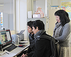 表彰結果は極めて僅差でシュレスタ・ビベクマンさん(環境情報学部2年生)の勝利となりましたが、参加した2人はお互いを讃え合い、和やかな雰囲気の中で「来年はもっとがんばろう」と声を掛け合っていました。 その後、火曜日恒例の岐阜聖徳学園大学とのSkypeに参加し、同大学の学生さんと英語で語り合いました。趣味やクリスマスの予定等、初対面とは思えないほど話がはずみ、ジョークの飛び交う会話を楽しみました。 この日は、2015年の講義最終日。笑いのあふれる、活発なランチタイムとなりました。