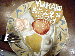 Then, we had a birthday party for Chin Rai and Yukako. The plans for this were secret, and both of them were surprised. We gave them a bunch of flowers each and a cake.