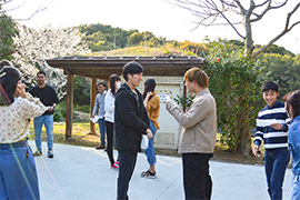 | 2019年3月27日〜29日の3日間、志摩市で恒例の英語合宿を実施しました。今年度は、四日市大学・四日市看護医療大学を合わせて16人の学生が参加し、英語を使ったアクティビティや、英語のレシピを見て自炊するなど、生活の中で多くの英語を使いました。 初対面の参加者も多く、最初は緊張気味でしたが、合宿の最初に行ったメンバー全員と話をする「人探しゲーム」で、すっかり打ち解けました。その後、看護医療大学の学生による「卵探しゲーム」をはじめ、たくさんの活動を行いました。参加者はチームでの活動を通して親しくなり、夜は参加者が集まって夜更かしするなど、楽しい時間も過ごせたようです。 会場となった志摩市大王町は、伊勢志摩国立公園の中心部に当たる風光明媚な環境で、美しい山と海に囲まれ、充実した3日間でした。 |