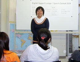 | ESLでは、「英語スピーチコンテスト」を実施します。 やさしい英語で結構ですので、身近なこと、自分のふだん考えていることなどを、ぜひ、伝えてください。参加者のほとんどは、スピーチに始めて挑戦する人が多いので、気軽に参加してください。