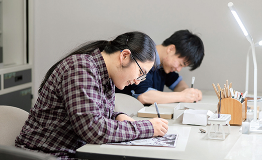 四日市大学伊勢型紙愛好会は、1988年の大学開学と同時に創部されました。伊勢型紙とは、三重県鈴鹿市白子の伝統工芸で、着物の柄などを特殊な和紙(伊勢型紙)に各種の彫刻刀で彫るものです。人間国宝や伝統工芸士などプロの作品を手本に、インテリアとしての作品を作製しています。大学祭や四日市祭りなどでも簡単な作品の実技指導をしたり、作品展の開催など行っています。また他にも部員の合作で寄贈額を作製しています。