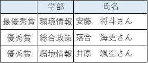 なお、表彰式は11月12日(水)12:45~ラーニングコモンズで開催いたします。