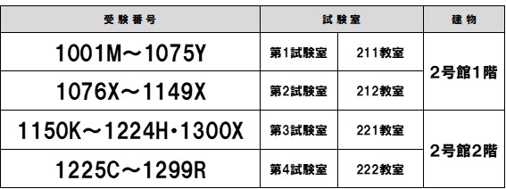 ・「地理歴史・公民」、「理科」で1科目受験者は、2科目受験を行っている教室がありますので、試験室に入室後は、